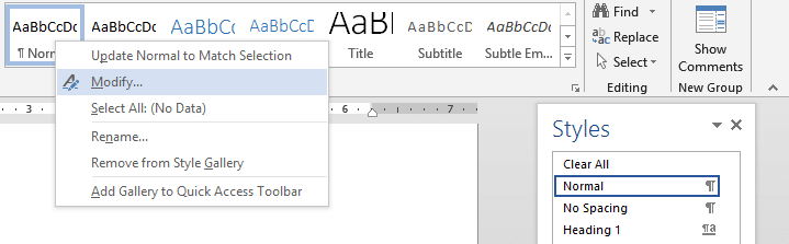 You can change the definition yourself as well. To change the definition of a style you can right click on the style in the Quick Style Gallery on the home tab and click ‘Modify’ . You can also click on the dropdown menu on the Style in the Styles Pane.